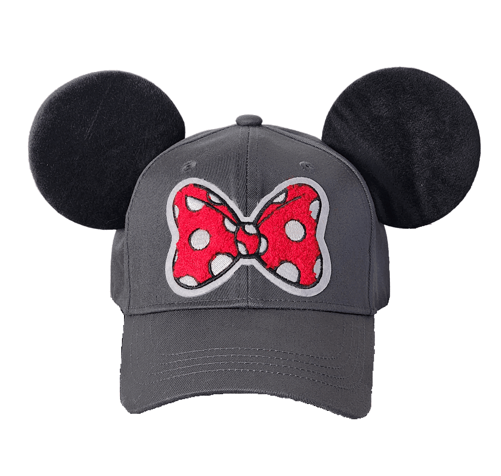 Our Minnie Bow mouse ear hat is perfect for a day spent in the Disney parks or out around town. This hat is made of 100% high quality cotton to be both lightweight and durable. It features fuzzy chenille polka-dot bow patch, and two premium black mouse ears made to stand up... even on the wildest rides!
