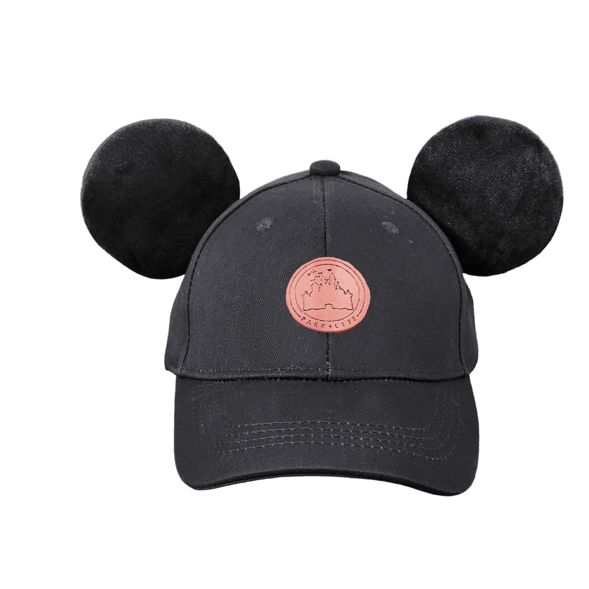 Our kid's True Original mouse ear hat is sure to make your little one smile! This hat is made of 100% high quality cotton to be both lightweight and durable. It features a vegan leather "Park+Life" logo castle patch, and two premium black mouse ears made to stand up... even on the wildest rides!