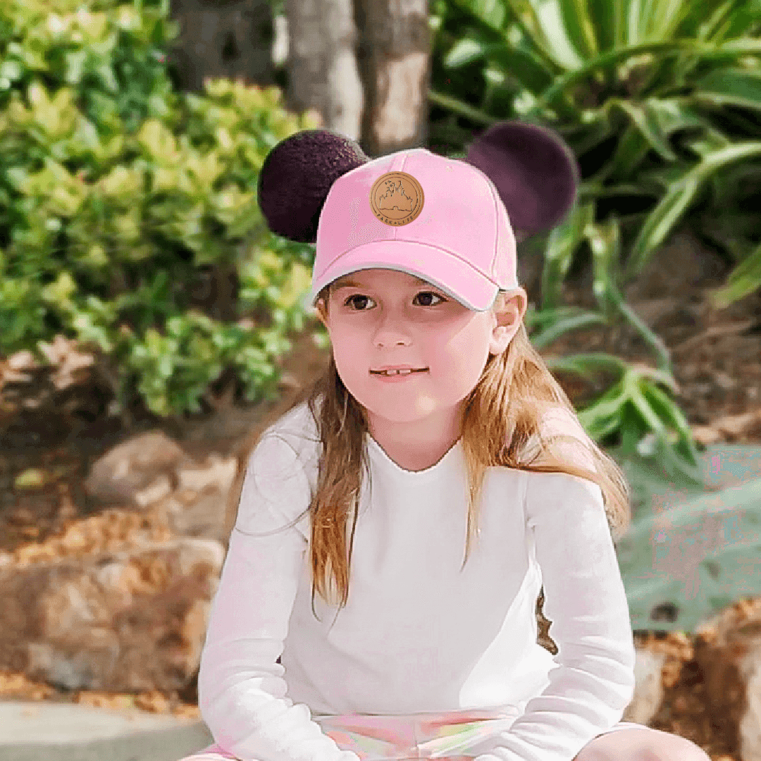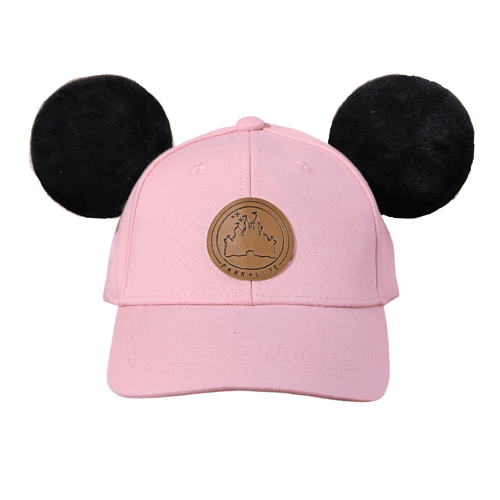 Our kid's size True Original mouse ear hat is perfect for a day spent in the Disney parks or out around town. This hat is made of 100% high quality cotton to be both lightweight and durable. It features a vegan leather "Park+Life" castle logo patch, and two premium black mouse ears made to stand up... even on the wildest rides!