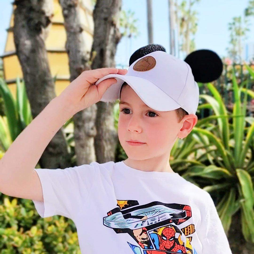Our kid's Happy Place mouse ear hat is sure to make your little one smile! This hat is made of 100% high quality cotton to be both lightweight and durable. It features a vegan leather "Park+Life" logo castle patch, and two premium black mouse ears made to stand up... even on the wildest rides!
